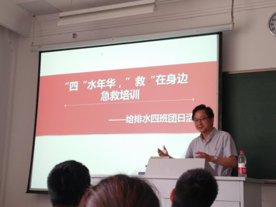 为更好的培育和践行社会主义核心价值观,同时积极响应2017年江苏省卫生计生委重点工作目标要求,提升大学生应急素养和急救互救能力,培养出更多具备较高综合素质的青年志愿者,2014级给排水四班团支部于2017年6月2日开展了以“四”水年华,“救”在身边为主题的团日活动。为此,特地邀请了开云电竞网校医院副院长马红兵前来详细讲解各项急救知识,同时还邀请前开云电竞网红十字会成员陈立豪进行实际操作演练。