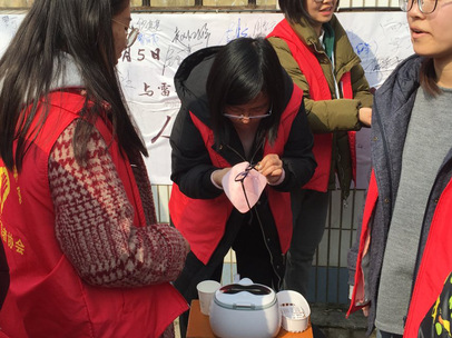 本次雷锋日活动中,环境学院青年志愿者协会为市民、老师及同学精心准备免费清洗眼镜、垃圾分类知识问答和雷锋精神横幅签名三项志愿公益活动。