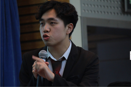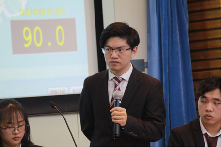 二辩杨诚学长眉头紧蹙地思考着如何拆解对方的论点论据