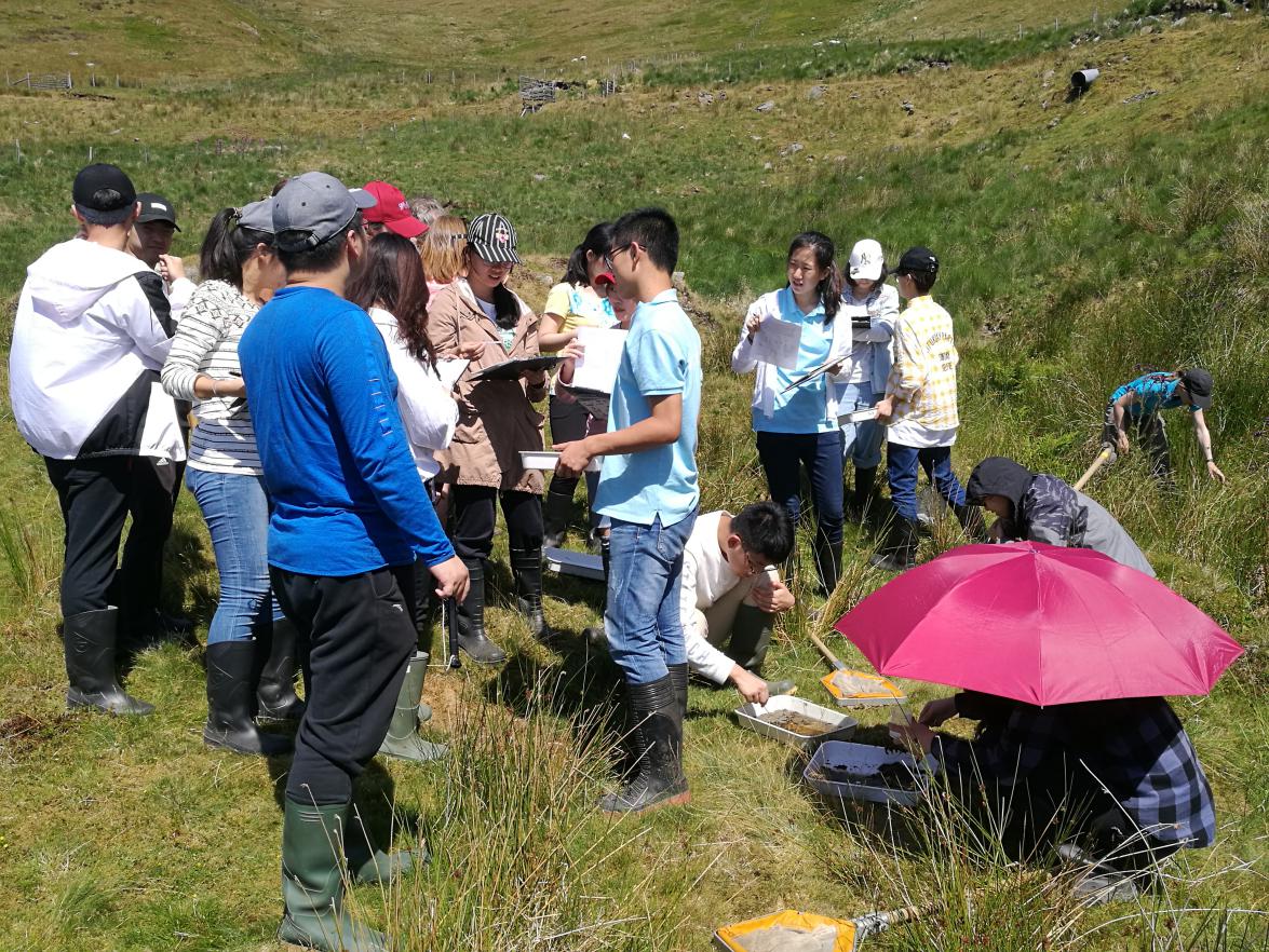 下午,Paul教授给我们简要介绍了威尔士中部的重金属污染情况,随后带领我们去靠近亚伯镇的Blaendolau训练球场进行土地采样,以备后面进行重金属检测。同学们凭借球场的卫星图,运用GSP定位仪以及螺旋土壤钻进行3-4个点的采样工作。虽然整个野外工作的工作量并不大,但是让同学们亲自体会样本的选点、定位以及采集可以增加同学们的操作经验,真正做到学以致用。同时书本知识在现实中的体现,也能激发同学们的学习热情。