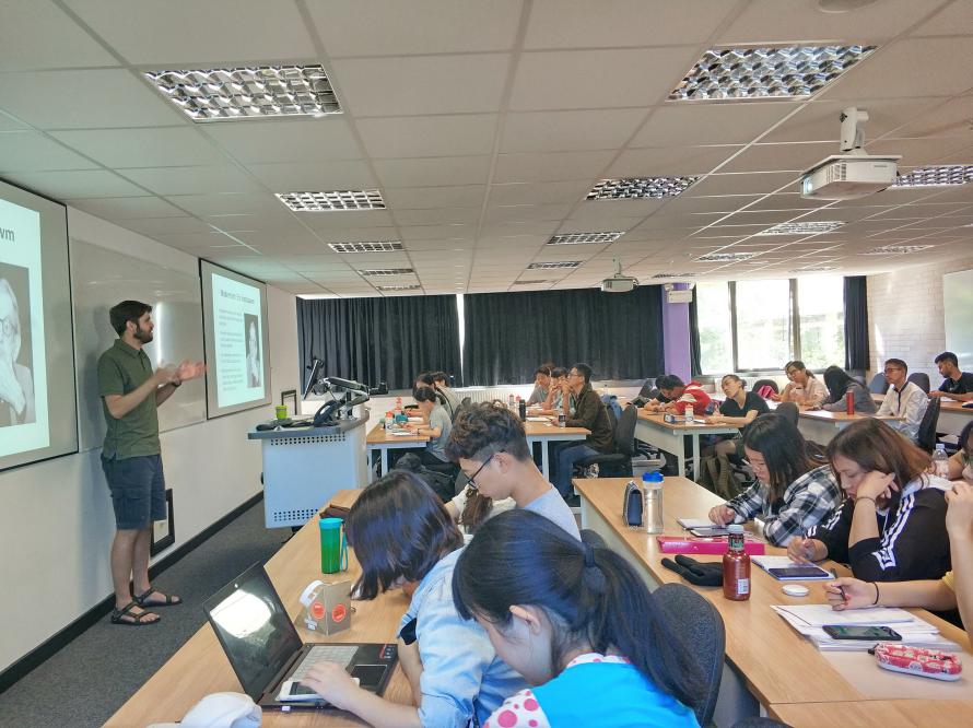 上午9点,同学们在Hugh Owen教室集合,上午的课程是由亚伯国际政治系的老师讲授的关于民族主义的课程,Huw Lewis教授给同学们讲解了什么是民族主义,并通过举例的方式向同学们介绍了不同国家不同种族的民族主义,让同学们对于民族主义有了更深刻的了解。上午11点是英语语言学习课程,Yvonne教授紧接着上节课的话题,和同学们讨论了对于民族主义的认识,加深了同学们对上节课程所学知识的印象,灵活的授课方式获得了大家的一致认可。