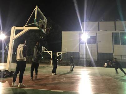 11月2日晚,美育课堂篮球班开始了第一堂课程,老师是李臻宇和孙继鹏。本节课的目标是教会大家篮球赛事的基本规则,基础的投篮以及上篮的技巧。
