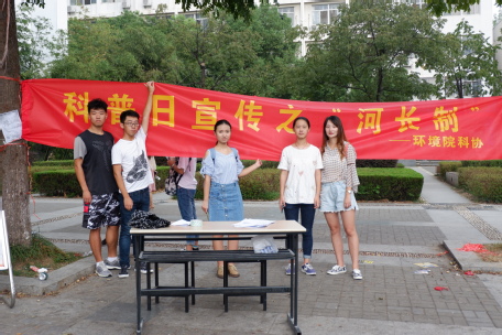 2018年9月15日中午11点,由环境学院科协策划并举办的2018全国科普日活动——河风海韵之河长制知识宣传活动于六食堂门口顺利举办。该活动面向全校学生,旨在让同学们更好地了解河长制的制度背景和基本原则等知识。