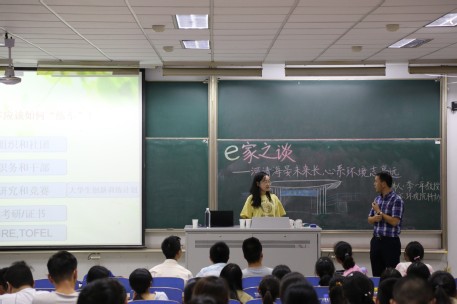 接着,李教授就目前的情况,对诸如学习生活中的问题、如何度过大学的时间、环境学院的就业形势、毕业去向、毕业打算等话题,为同学们进行了详细的讲解。此外,李教授还现场采访了大二的同学,为大一的新生传授经验。为了让同学们在差距中去追寻更优秀的自己,李教授也为大家介绍了国内外名校学生的优秀学习方法与习惯。