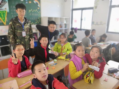 下午1点40,志愿者们乘坐地铁来到了将军山小学。在校园中,负责人曹玉洁同学为每位志愿者分成了3小组,每个小组有1位讲师和3位助教,他们分别进入3个班级为小朋友们传授有关垃圾分类的知识。
