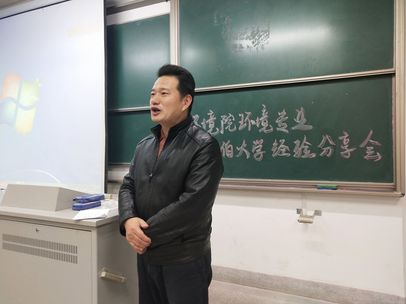 在钮青老师的开场致辞后,交流活动正式开始。本次交流活动的第一位发言人是曹松祥书记。曹书记首先对我校的环境专业进行了简要介绍,并提及了环境专业已进入双一流建设的名单。此外,他还肯定了环境专业学生的学习能力,鼓励大家在学业上奋勇前进。