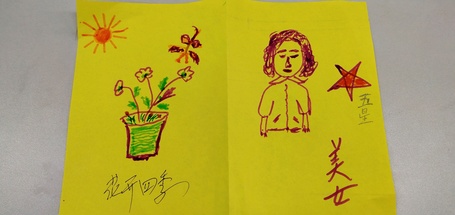 制作贺卡的过程中,老人们和志愿者相处得其乐融融。很多老人一边做着贺卡一边向大家讲述他们的青春故事,而志愿者们也听得津津有味,不时和老人们交谈几句。还有老人为志愿者悉心做出“花开四季”的绘图贺卡,字句之间表达了老人心中对志愿者最真挚的祝愿。