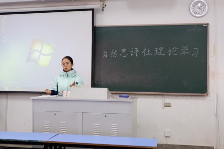 为充分提高大学生对于思想政治理论的兴趣,2018年11月30日下午15:50于致用304开展了自然思评社理论学习,本次课程的主讲老师为环境学院团委书记曾莉。