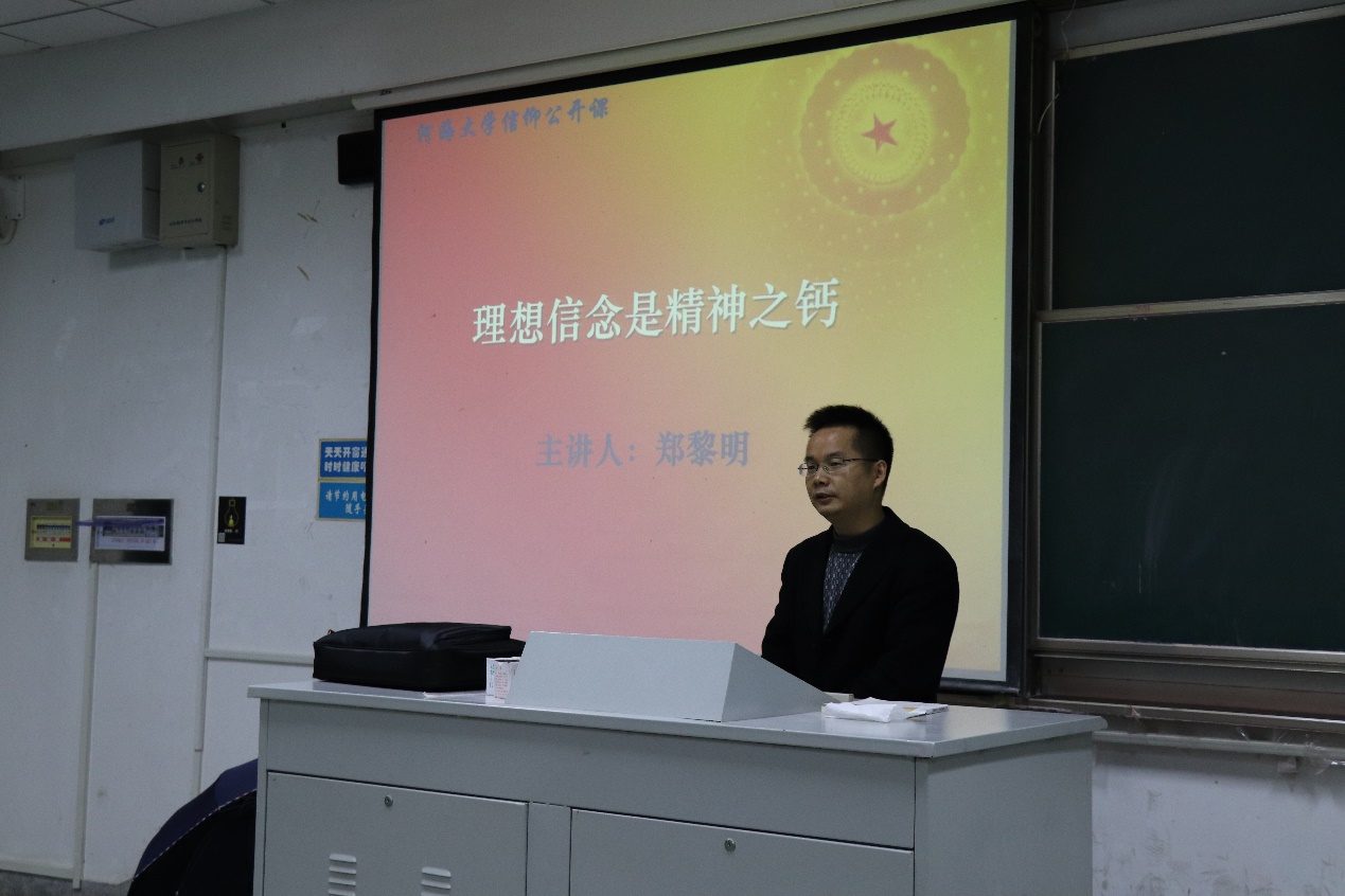 2018年12月4日3:50,开云电竞网环境学院在致高A116教室举办“信仰公开课”系列讲座。本次讲座邀请了开云电竞网马克思主义学院的郑黎明副教授作为主讲人,郑教授围绕“理想信念是精神之钙”这一主题,从其内涵等方面讲述了信念对于当代大学生的重要性,并且为同学们今后的学习和生活提出了一些建议。