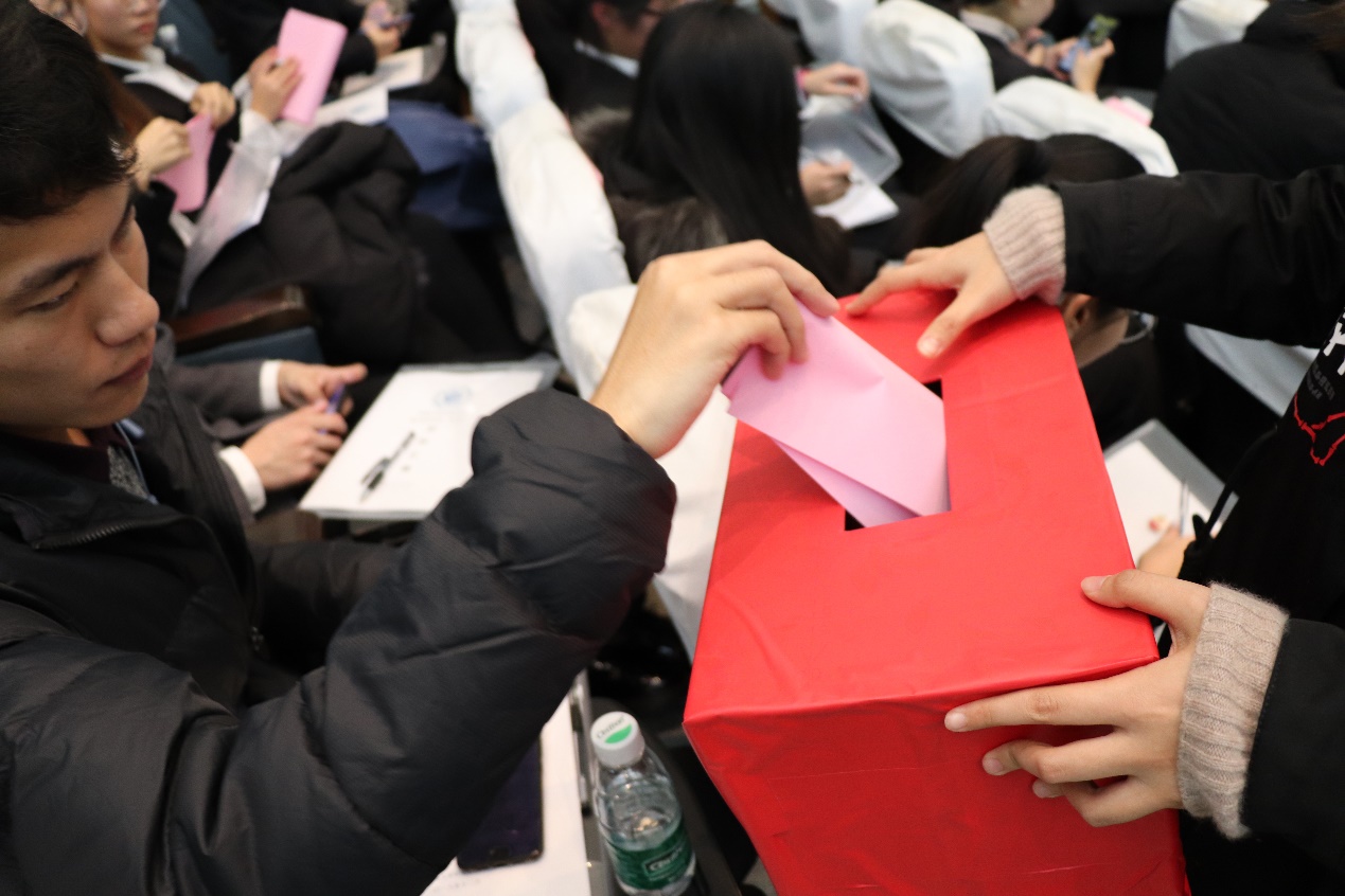 在审议并通过《选举办法》后,十位候选人依次发表了竞选演讲。这十位候选人都是来自环境院各个年级的优秀学生,都有着为同学们服务的热情,让代表们在投票时纠结不已。