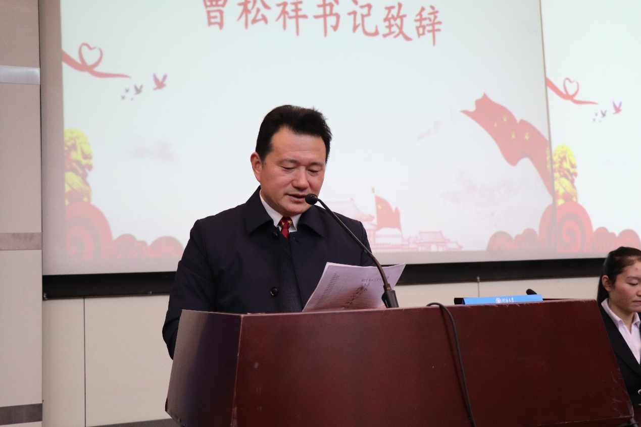 会议的第四项议程是曹书记为开幕式致辞。曹书记肯定了环境院学生会和科协的工作能力、为环境院做出的贡献以及在学院中的重要地位,并且赞扬了学生会和科协举办的一系列活动。书记还向学生会和科协提出了几点要求,希望他们能成为团结友爱、办事高效、热心服务的院组织。并且,书记强调,干事们在服务同学的同时要兼顾学业,成为同学们的好榜样。
