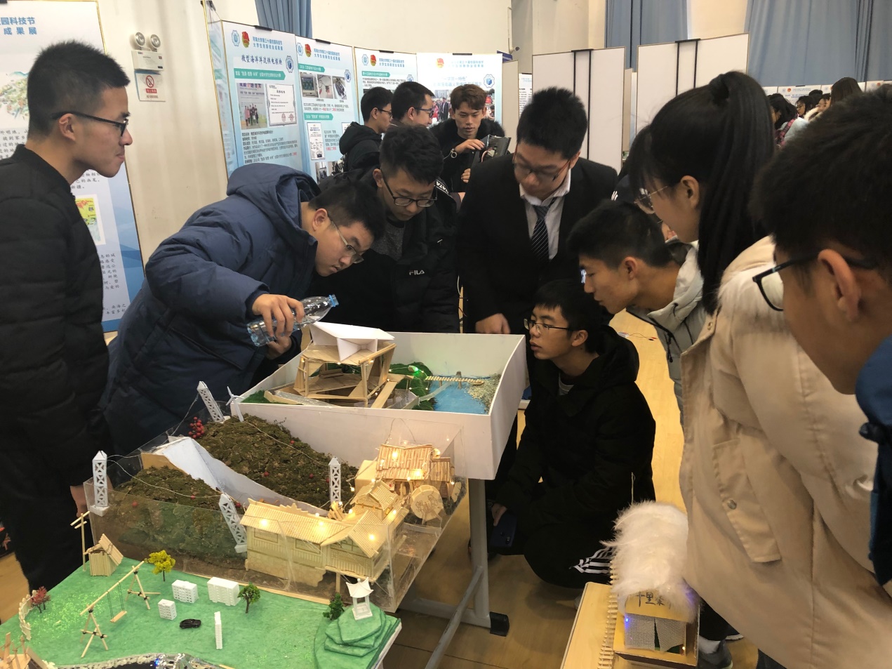 之后,工作人员们为来观展的同学介绍了沙盘作品的工作原理。看完工作人员详细的演示,同学们都不禁对参展作品表示赞叹。