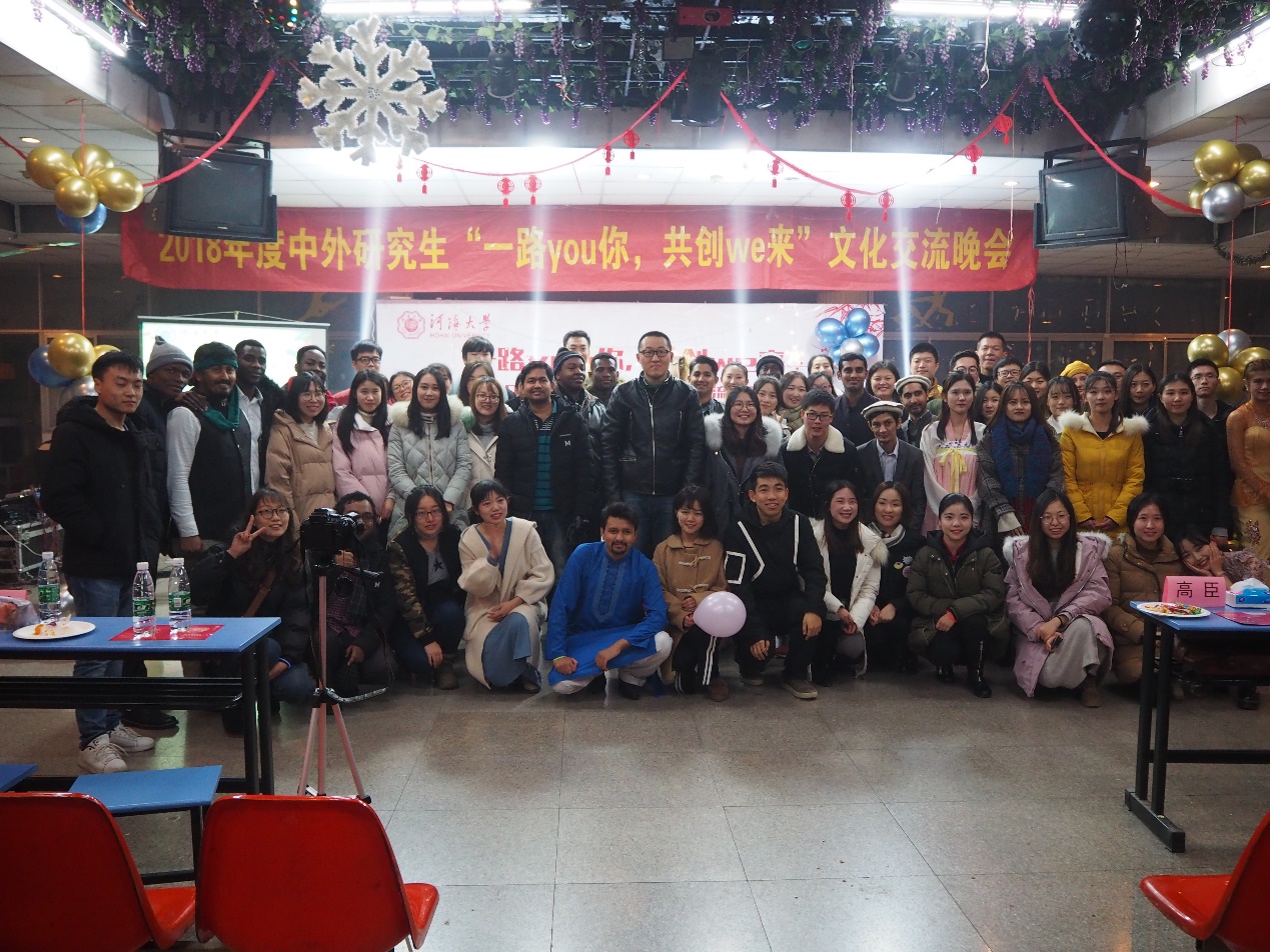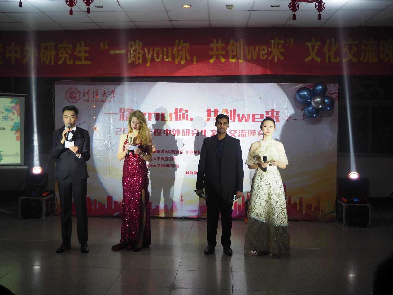 2018年12月8日晚18:30,在开云电竞网鼓楼校区学生城举办了主题为“一路you你,共创we来”开云电竞网中外研究生交流晚会。此次晚会由共青团开云电竞网委员会、开云电竞网环境学院、开云电竞网外国语学院主办,开云电竞网研究生会、环境学院研究生会及外国语学院研究生会承办,旨在丰富同学们课余生活,加强不同国家间的文化交流,推动学校文化活动的蓬勃发展,给各国同学们一个真正展示自我风采和文化交流的舞台。参加晚会的嘉宾有环境学院研究生导员高臣老师和16级环境学院主席团的师兄师姐,以及各学院研究生会主席。