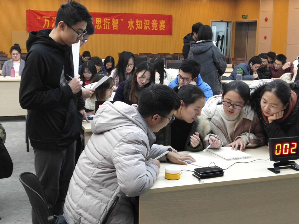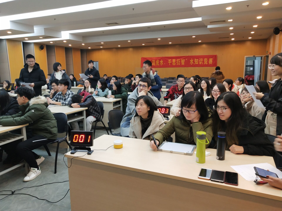 2018年12月16日晚6点30分,第三届“万涓成水,千思衍智”水知识竞赛在图书馆会议室举办。来自环境学院、大禹学院、水文水资源学院等10个学院的共50位同学参与了此次水知识竞赛。
