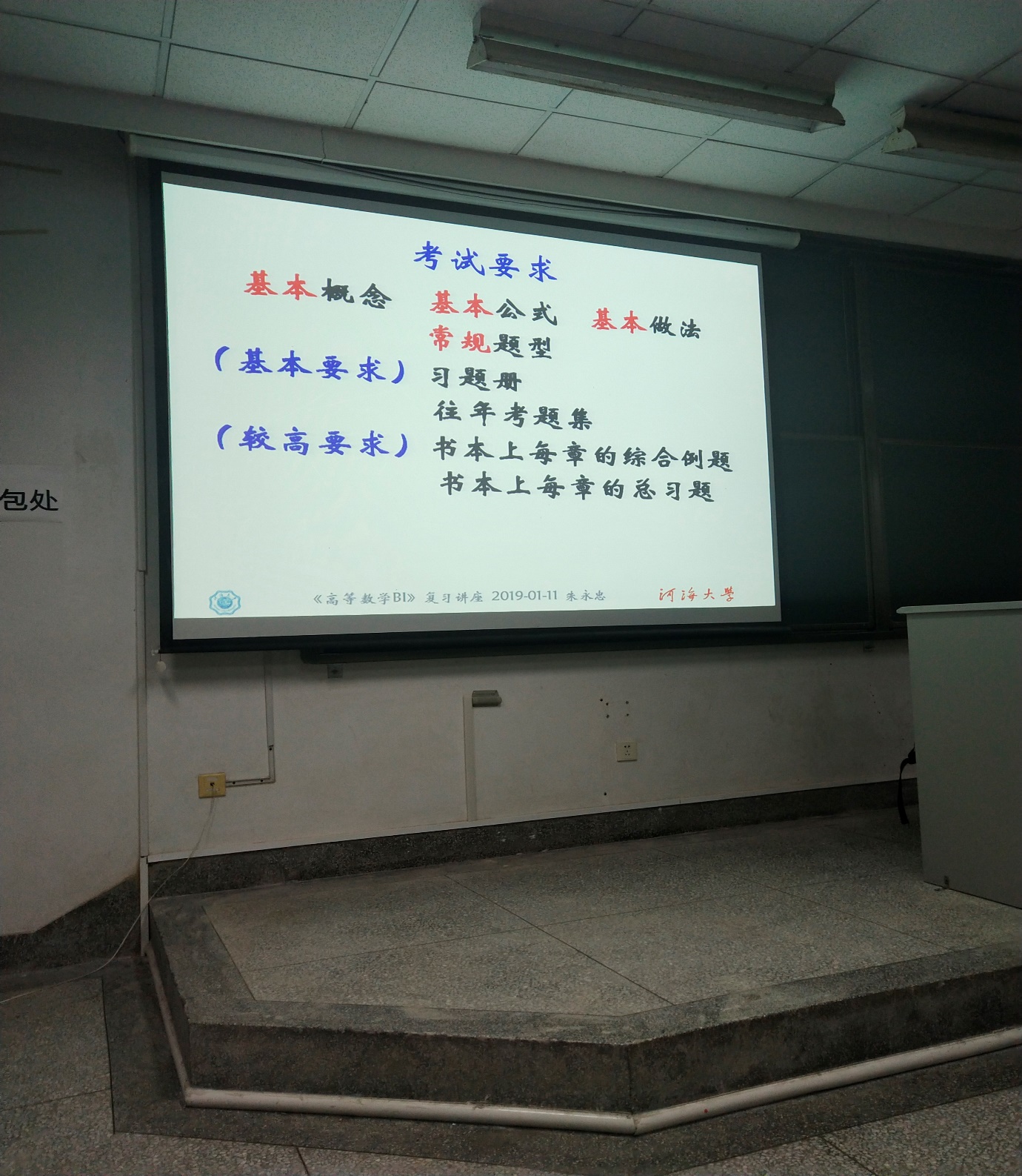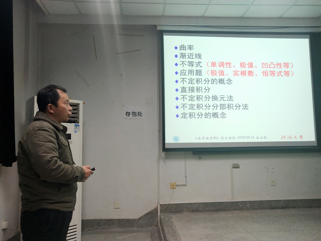 2019年1月12日晚18:30开云电竞网环境学院学生会学习部于致用楼117教室举办了2018级高数期末讲座。随着高数期末考试的来临,许多大一同学感到了考试的压力,所以学生会学习部特意邀请了教学经验丰富的朱永忠教授作为本次讲座的主讲人。幽默风趣的朱永忠教授在向大家进行了简单的自我介绍之后便进入了今天的主题。