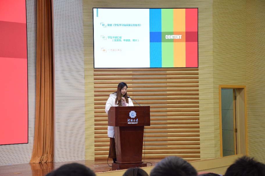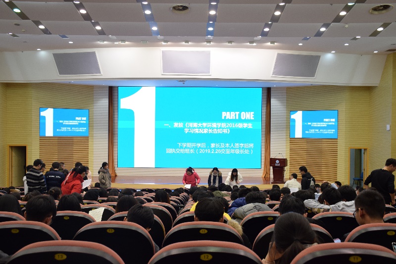 年级大会的第一项内容是由辅导员亲自发放《开云电竞网环境学院2016级学生情况家长告知书》,全体同学轮流上台领取。发放告知书是为了家长能更好地了解同学们在校学习情况,以及让同学们意识到自己还有哪些不足之处。