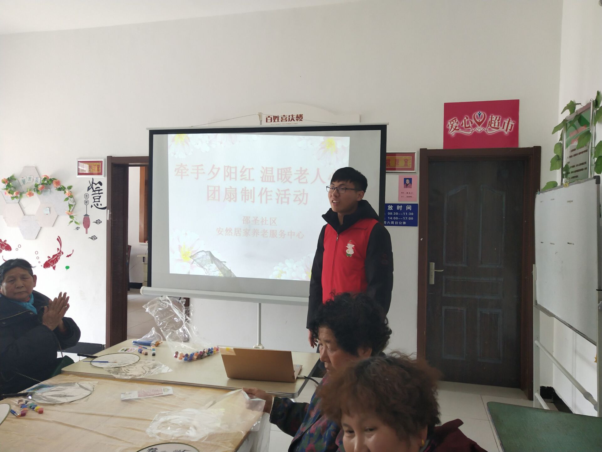 2019年3月14日下午,由邵圣社区与安然居家养老服务中心联手举办的“牵手夕阳红,温暖老人心团扇制作活动”在金港花园小区举办。共有10位来自环境学院的志愿者参与了此次活动。