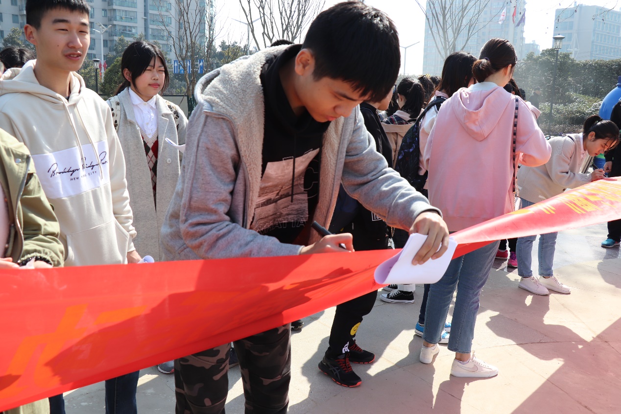 在近三个小时的调查后,志愿者们陆续返回了集合的地点。在负责人的组织下,每个人都在横幅上签下了自己的名字,标志着自己节约用水以及保护水资源的决心。