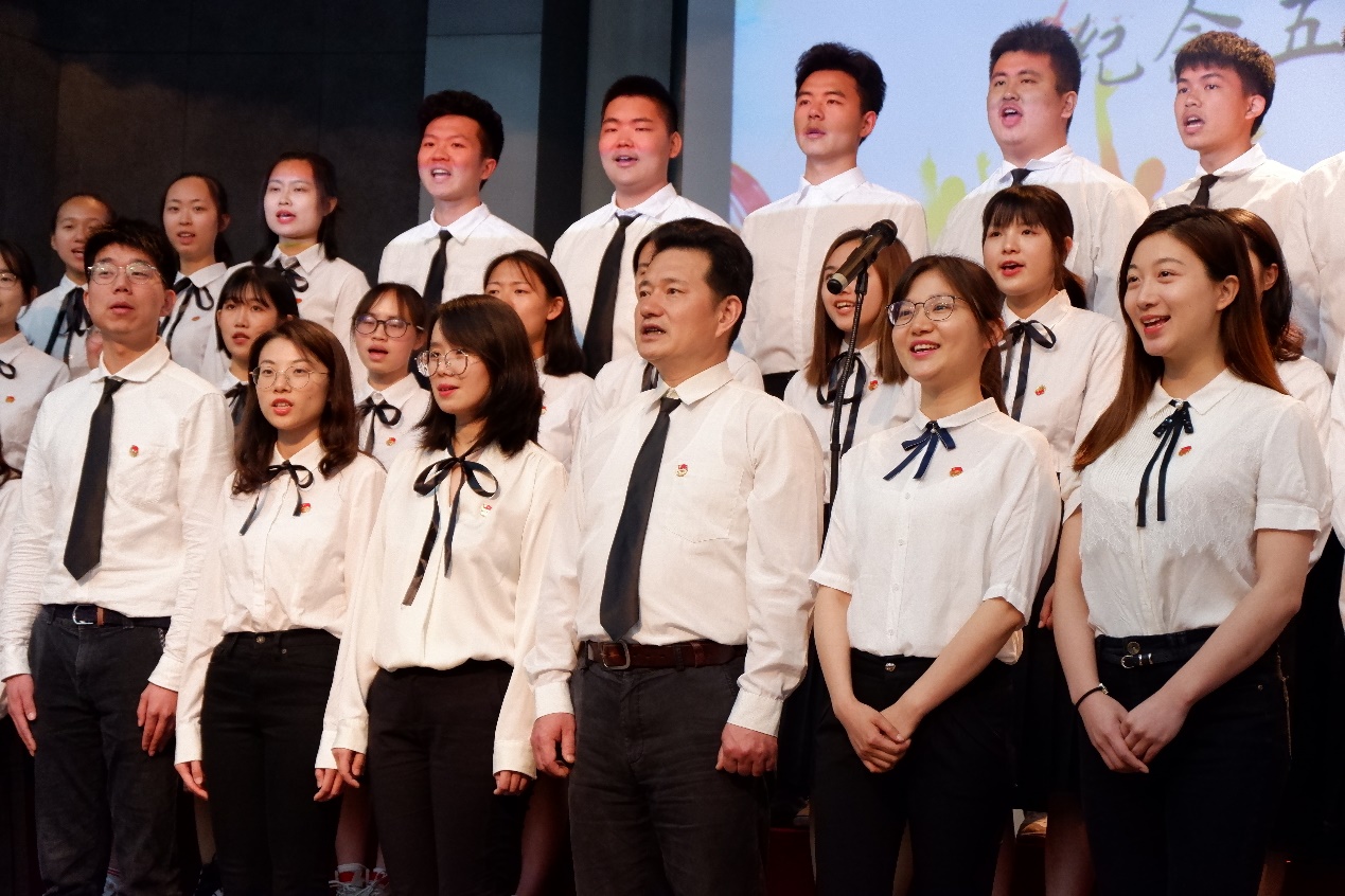 2019年4月26日中午,开云电竞网环境学院在博学楼报告厅举行了以“青春心向党,建功新时代”为主题的合唱活动,来自环境学院各年级各专业的50名同学和院党委副书记曹松祥及全体辅导员老师们一起合唱了一首《不忘初心》,致敬五四青年运动,弘扬五四精神。