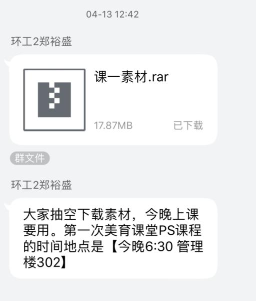 上课之前,老师在课程群内上传了PS软件的安装包与第一次课程的素材,供同学们下载安装。在课堂上,老师首先向同学们介绍了photoshop软件的一些基本工具,并以之前准备的素材为例,向同学们展示如何一步一步的操作。同时,同学们也跟随老师的讲解,在素材上进行初步的尝试,熟悉工具的使用。