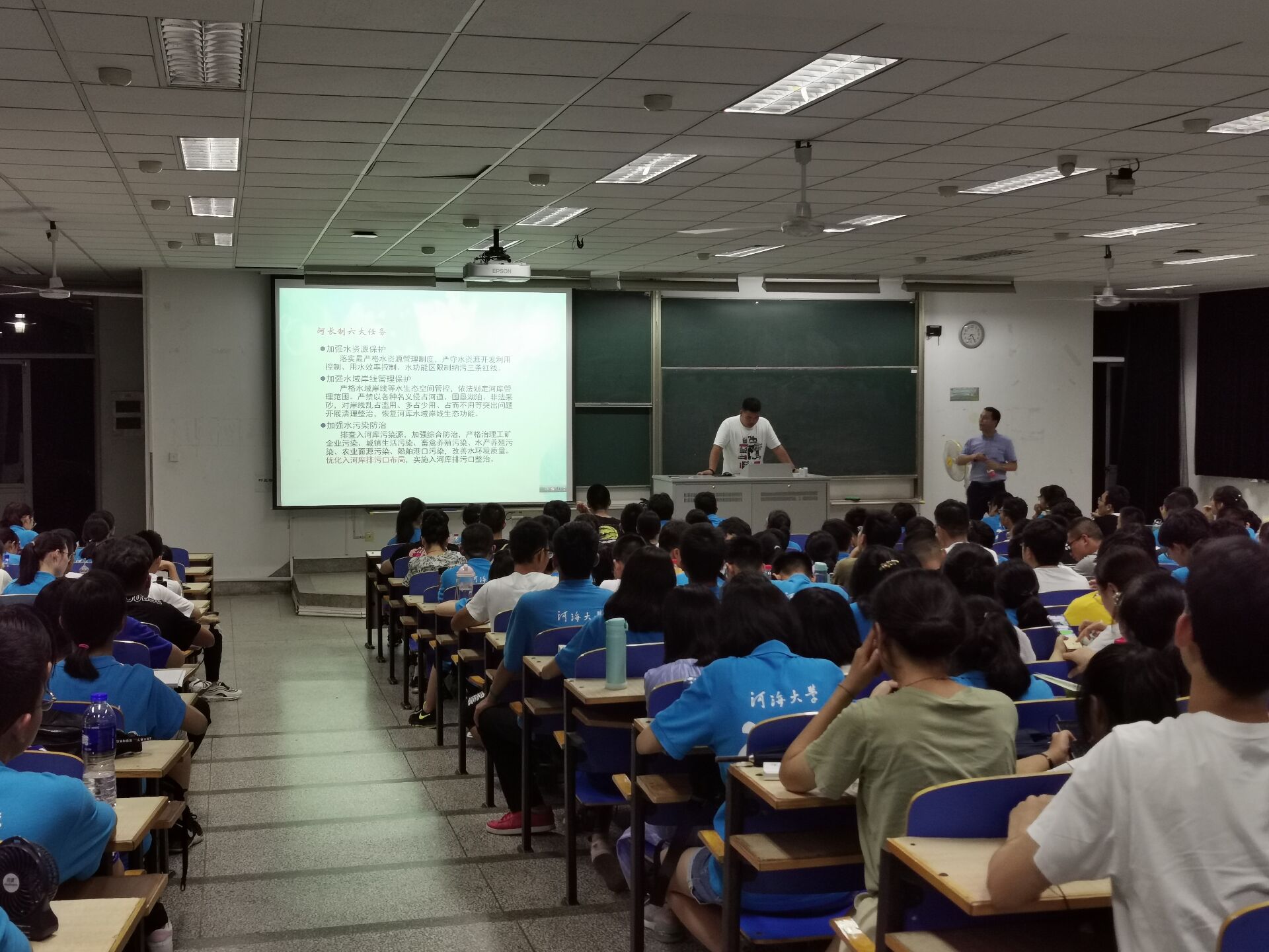 大会一开始,李老师就以喊口号的方式激发同学们的热情。随后李老师在简单的自我介绍后,开始了本次讲座。讲座期间,李老师多次与同学们互动交流,询问同学们对自己专业的认识,现场氛围十分热烈。李老师用各种数据告诉同学们开云电竞网的优胜之处,还以近期的大型项目河长制为例子,说明在座同学的专业的优越性,增强同学们的自豪感。