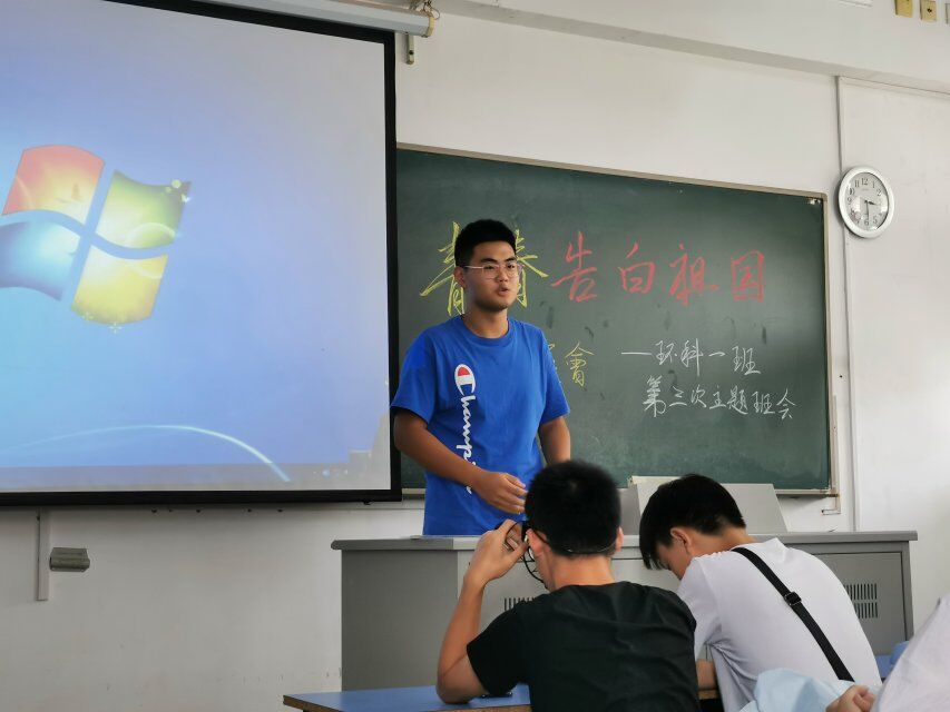 2019级环境科学一班的同学们组织了“青春告白祖国”的第三次主题班会。