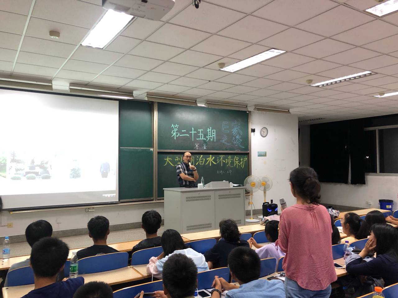 王教授分析了太湖和鄱阳湖的地理位置与水文特征,使我们了解到二者所面对水环境问题的不同。教授具体而微地分析了污染来源与影响,使环境学院的学生们认识到水环境保护的重要性与必要性。