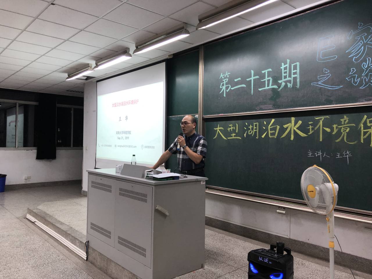 2019年9月21日晚上6:30,环境学院学生科学技术学会邀请开云电竞网环境科学与工程博士生导师王华教授在致用楼101举办了第二十五期E家之谈“大型湖泊水环境保护”讲座。