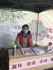 即使微不足道也想出份力。疫情爆发后,2019级环境2班储林佑立即响应号召,积极报名参加了社区的志愿者活动。在社区内,储林佑的主要工作是登记出入社区的人员及体温检查。作为一名优秀团员,入党积极分子,储同学每天尽职尽责完成工作。每天中午,一碗盒饭就是他的午餐。有时在高峰期,储同学甚至吃不上饭。回想起这次艰苦的防疫经历,他说:“相比较前线的医护人员,我做的实际上是微不足道的。只希望中国能早些好起来。”