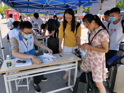 今年由于疫情原因家长无法入校,环境学院为新生安排了周到的志愿工作。学院也安排了教师党员代表在南门帮助新生报到。许多新生表示非常感激学院的体贴与细致,也在报到期间感受到了环境学院的热情。