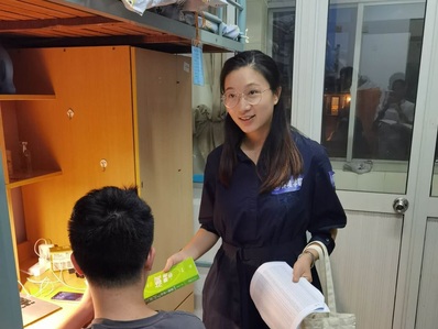 结束了两天的迎新工作,每位工作人员都非常疲累。作为环境院2020级辅导员,金意倩老师和杨铮老师顾不上休息便来到学生公寓进行探访,关心学生报到情况和思想动态,并向学生表示环境学院对他们加入的热烈欢迎,新生感受到环境学院的热情与关怀。