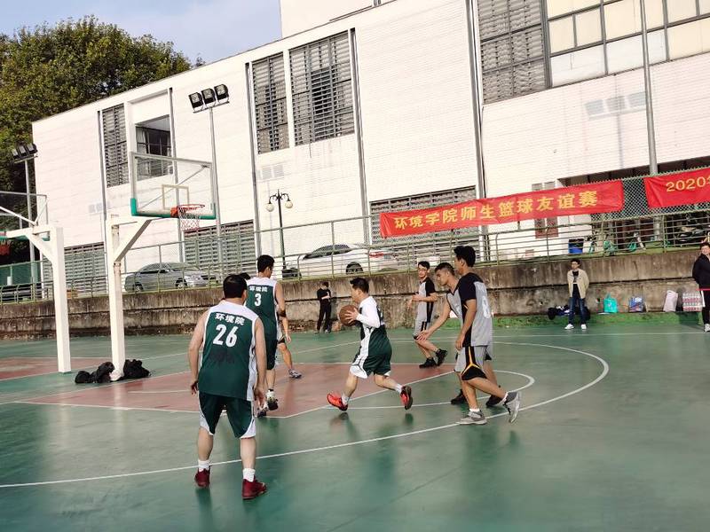 10月21日下午,环境学院在本部篮球场组织举办师生篮球友谊赛。由李一平、侯俊、张文龙、罗景阳、苗令占、周钢等组成的教师队和本科生、研究生等14人组成的学生队展开了较量。比赛在欢乐祥和的气氛中拉开帷幕,双方展开了激烈的角逐,李一平老师率先上篮得分,拿下了本场比赛的第一分。第一节比赛,两队势均力敌,比分你追我赶。上半场比赛结束,学生队以微弱优势领先。短暂的中场休息后,下半场比赛正式开始,球员们越战越勇。老师们继续稳定发挥,频频得分,最终教师队以50:45的比分赢得了比赛。