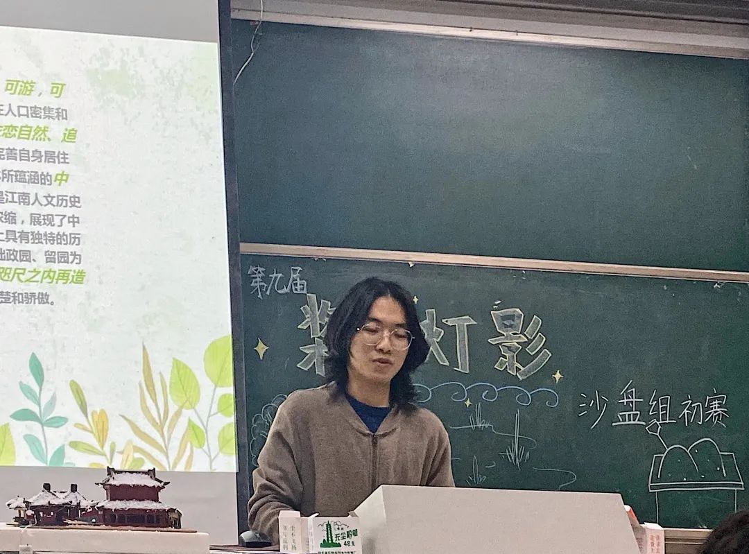 在评委和选手的问答环节中,创作理念与对环保的思考进一步展现,通过快递盒、废旧荧光棒、散落的墙体等等材料的二次利用,这些材料变废为宝,构成了选手们沙盘上的苏州园林、典雅建筑。这无不向大家展示着环保的魅力,彰显着环保的色彩。