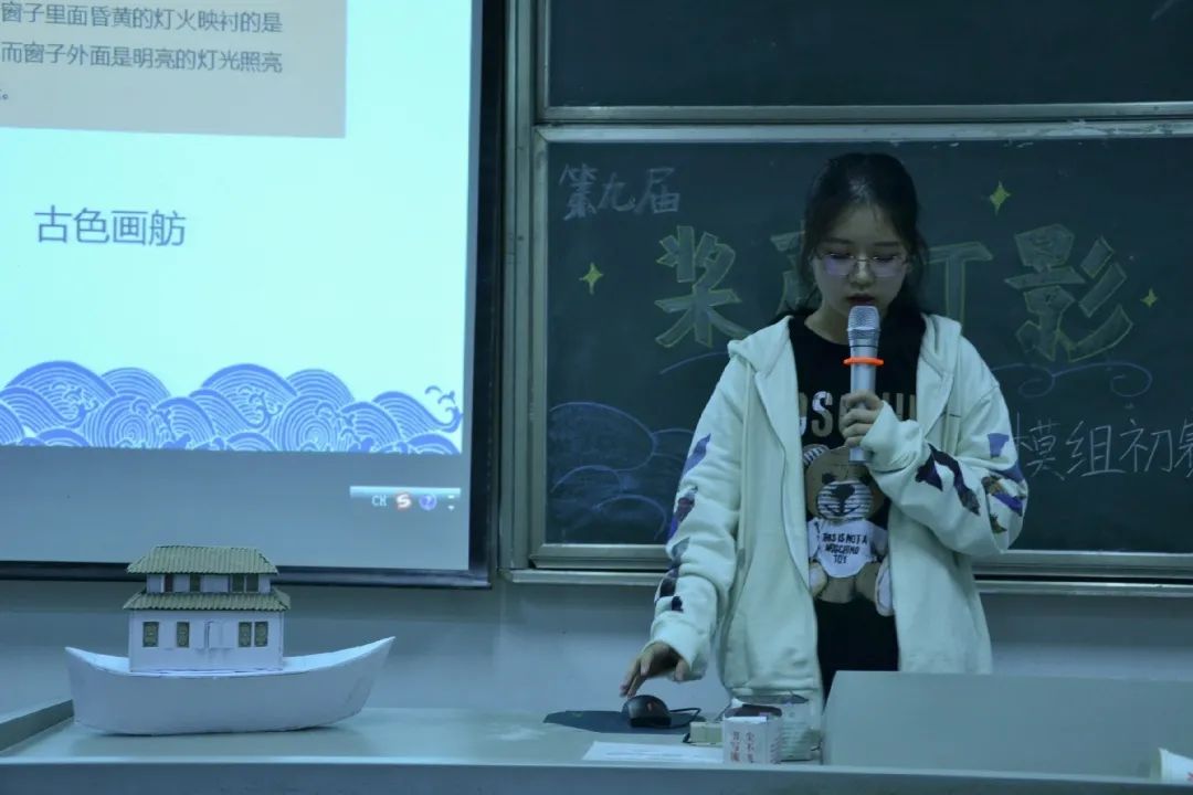 为了契合桨声灯影的主题,选手们别出心裁的灯光设计让人眼前一亮。LED灯的插入十分巧妙——独具匠心的选手将小灯泡插入灯笼里,营造出“江船火独明”的诗意氛围。水面上荡漾开的光影交织在船体上,引人遐想。秉持着环保理念,选手们大多使用了PVC板和木材类的环保材料进行制作,上色和粘合也使用的丙烯颜料与热熔胶,最大程度减少了材料对环境的影响。同学们在保证船体稳定性的前提下,尽可能地使用生活中废弃的木筷和快递盒,使其绽放了第二次生命。