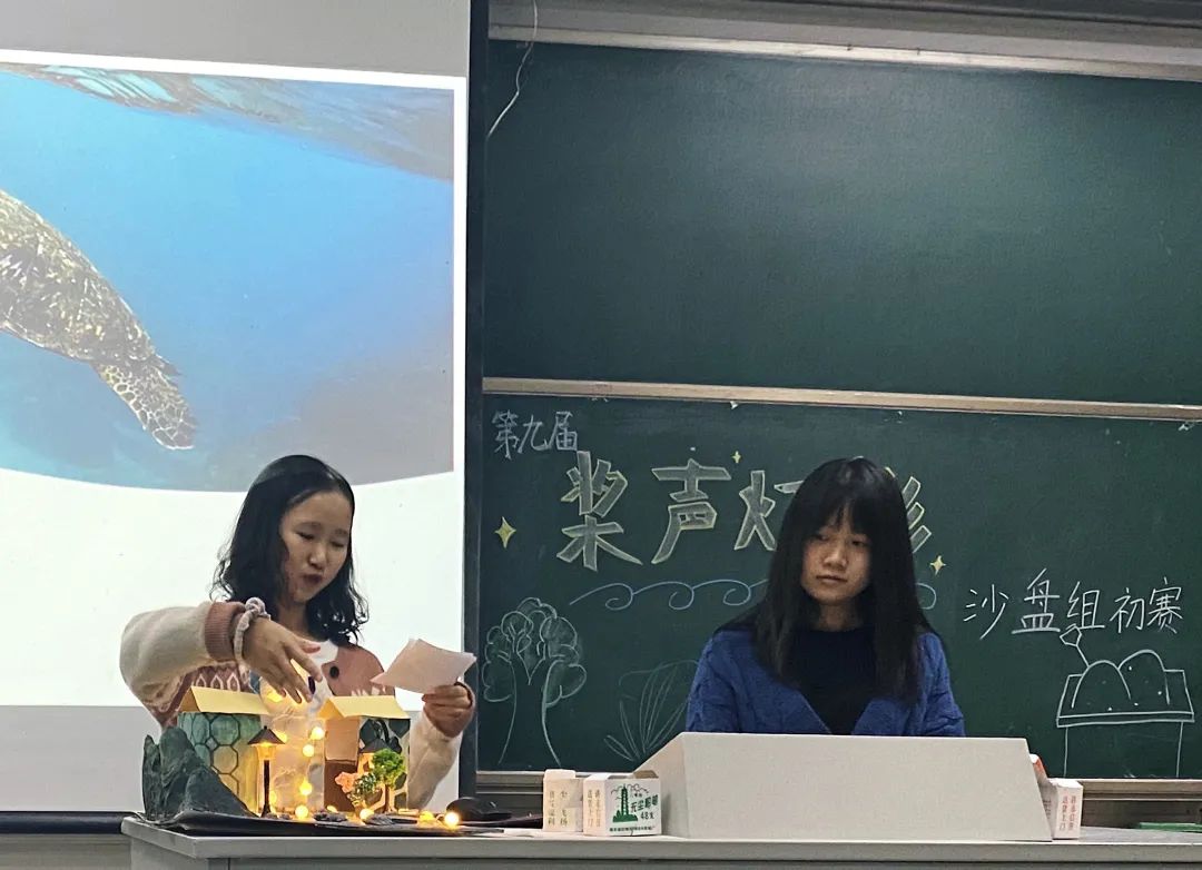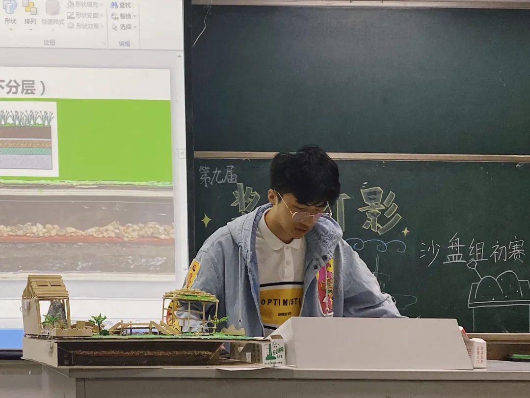 各组同学依次上台答辩,用ppt展示了自己的沙盘材料、制作理念和制作过程。精美的沙盘模型集聚了同学们的心血和对环保工作的追求与认知。通过团队配合和思想碰撞,多元化的沙盘成品让在场的所有人都领悟到了灯与影的结合魅力,也更加意识到环保的实现其实触手可及。