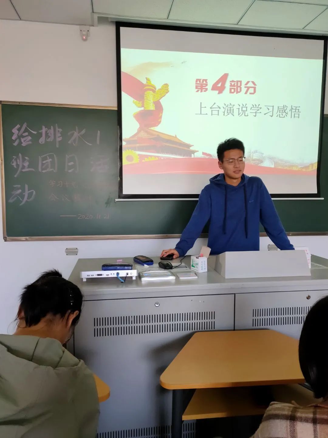 十九大的召开,给了沐浴在党的光辉的同学们一个紧跟时代潮流,了解世界局势和国家发展的机会。为更加深入学习十九大精神,给排水一班特开展了主题班会,同学们积极在班会上分享自己的感悟,表达自己的观点,共同学习成长。此次主题班会让同学们对十九大精神有了更深入的了解与感悟,也拉近了同学们之间的距离。
