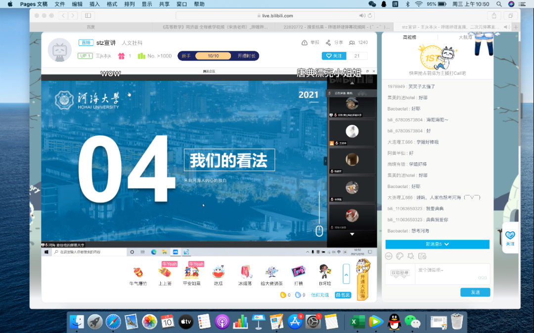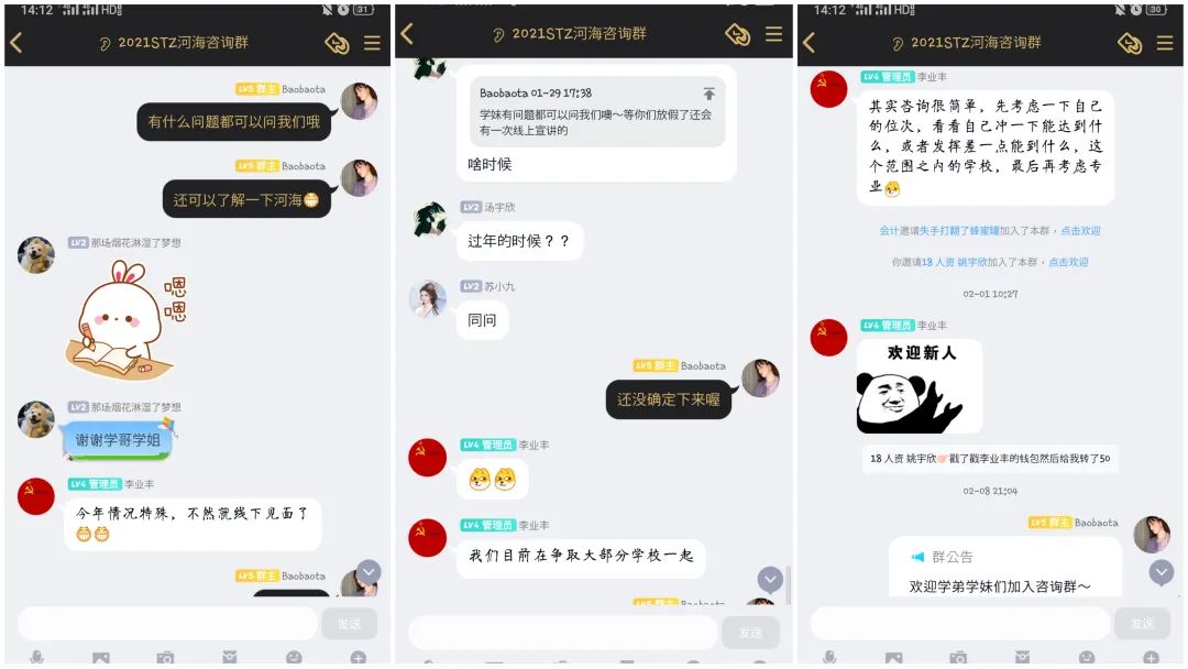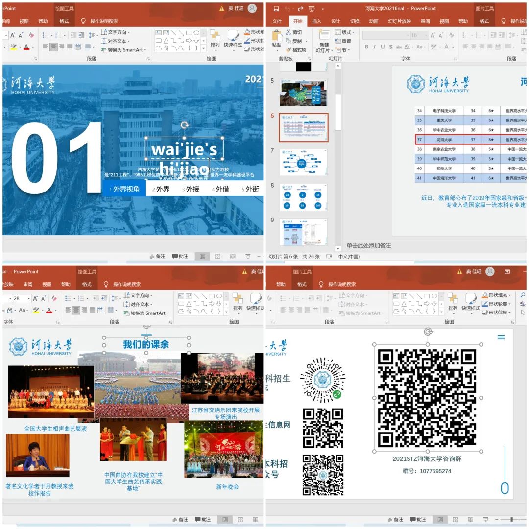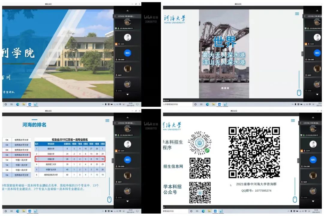宣讲队伍由六人组成,跨越四个院系,有来自环境学院的窦佳瑶、李泽胤、李业丰,来自商学院的季婧妍,来自计信院的岳海阳,来自港航院的唐典。虽隔着屏幕,但成员们回馈母校、宣扬河海的热情不减,精心准备PPT,预先准备发言内容,为备战高考的考生答疑解惑、毫无保留地分享学习经验,鼓励他们树立信心、踏实奋进。