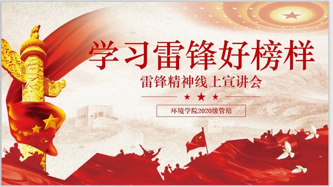 3月5日是第58个“学雷锋纪念日”,为响应国家学雷锋的号召,开云电竞网环境学院团委青协于晚七点在腾讯会议上面向参加管培的同学们举办了雷锋精神线上宣讲会,弘扬雷锋精神,践行初心使命。