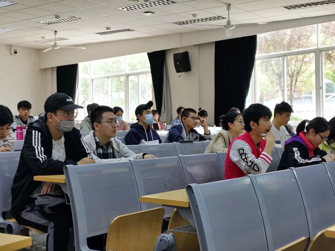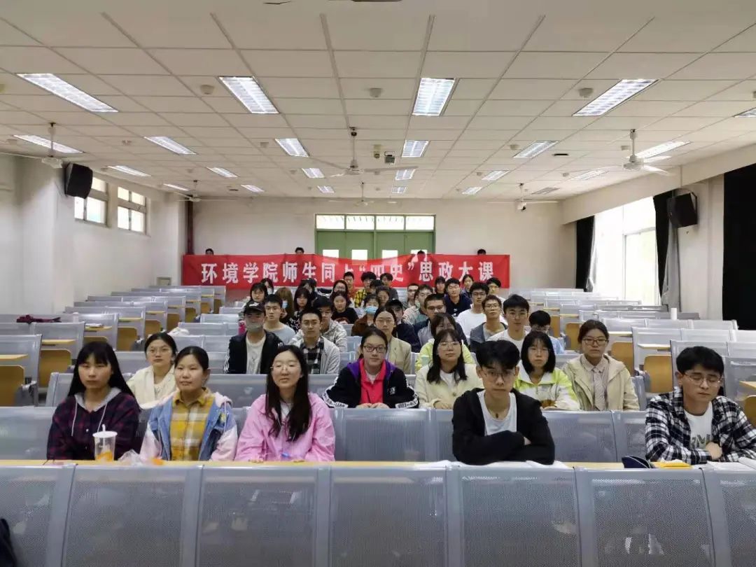 在学习党史课的现场,环境学院的同学们认真观看课程,用心体验红色精神。
