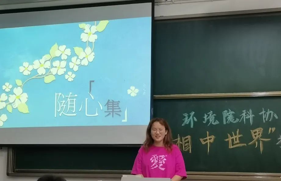 为响应学校注重在校学生心理健康的号召,环境学院科协推出了“相中世界”摄影活动,并在2021年5月21日晚于致高楼B举办了“相中世界”摄影大赛,引导同学们发现美、捕捉美。此次活动由海洋院科协主席张鸣、力材院科协主席诸敏燕、环境院科协宣传部部长李洁担任评委,在选手们展示完各自的摄影作品后由评委和现场观众投票决出排名。
