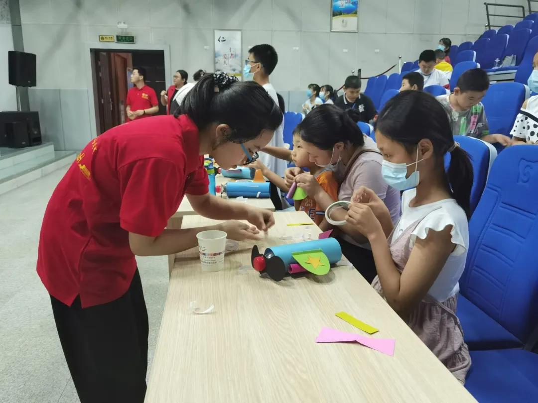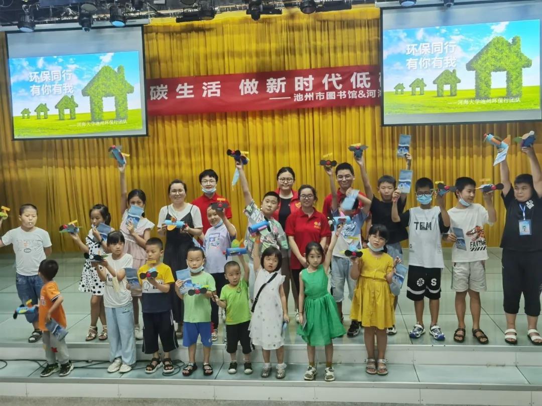 7月10日,实践团成员分别在池州市图书馆和科技馆开展了环保趣味科普活动。活动伊始,成员们向参与活动的小朋友与家长发放了精心制作的宣传手册。接着,杨萍同学就我国及世界环保现状入手,向小朋友们介绍了当今面临的三个严重环境问题,并呼吁少年儿童保护环境爱护地球。互动环节,团队成员带领指导小朋友们完成了用废旧报纸制作的手工环保玩具,践行节能减碳理念。此次活动,小朋友们积极互动,主动回答环保问题,分享自身环保经历,实践团队帮助当地少年儿童增强了环保意识、丰富了环保知识。该活动得到了当地图书馆公众号的宣传及电视台的报道。