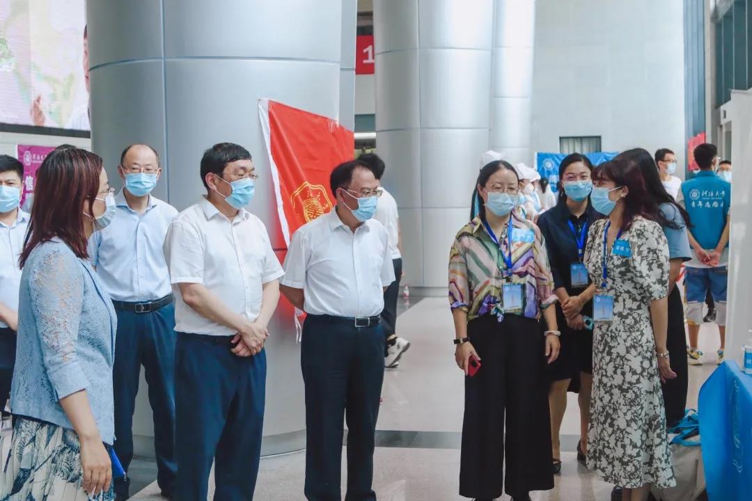 校党委书记唐洪武,校长徐辉,校党委副书记郭继超,副校长董增川,校长助理周语明,以及相关部门负责同志来到环境学院新生报到现场慰问工作人员、指导迎新工作。环境学院领导和老师们向校领导介绍了环境学院的迎新特色,对环境学院为每位入学新生准备的礼包进行了介绍,也对环境学院迎新期间的防疫措施进行了说明。校领导对环境学院迎新工作者的努力表示了肯定,同时嘱咐各位工作者一定要认真完成迎新过程中的每项环节,确保每位新生正常入学。