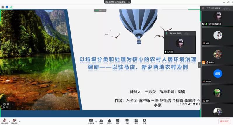至此,本次暑期实践线上评优答辩圆满结束。同学们在实践当中积极的参与态度、明确的责任分工、高效的办事效率、奋进的青春底色,让评委老师连发赞叹,同时通过答辩活动,团队更收获了自身的不足之处,这将是团队每位成员的一笔丰厚财富。老师的提问与建议也让同学对所完成的实践有更加合理、科学的认知。通过暑期社会实践总结评优,希望帮助全体实践组成员更清晰地认知项目的优点与不足。这并不是结束,而是一个新的起点。希望在学院各位评委老师和同学的指导帮助下真正使社会实践变成环境学院大学生受教育、长才干、做贡献的实践平台,对实践活动项目进行深入调研与探究,以期获得实践新发展!
