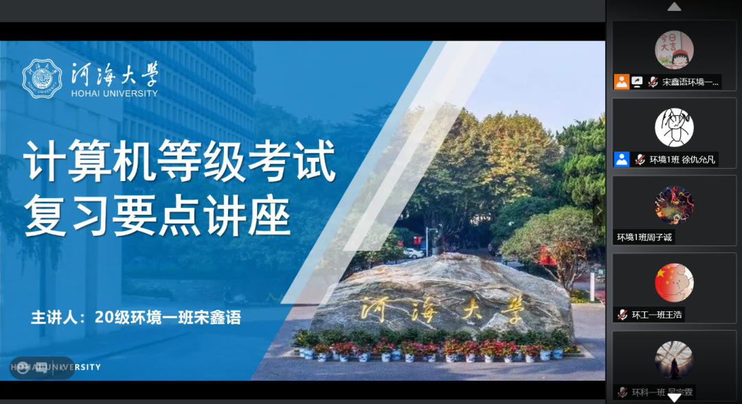 10月3日下午15:00点,美育课堂计算机课的负责人宋鑫语与助教环境一班徐仇允凡一起,通过腾讯会议的方式开展了线上计算机等级考试复习要点小讲堂。
