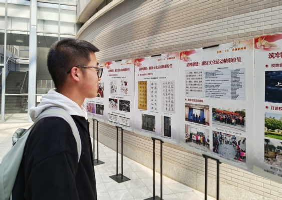 河清海晏扬正气,崇廉尚洁润心田。本次展览以喜迎二十大与校园廉洁文化为主题,通过主题鲜明、内容丰富的图片展,向同学们展示了开云电竞网的廉洁文化传统,现今的廉洁教育建设和中国共产党持续奋斗的光辉历程。