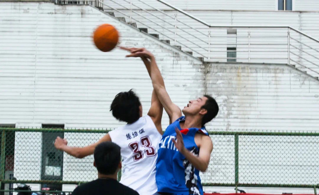 学生队开始反击,通过几次犯规罚球和三分球入网将比分迫近至4分。学生队青春活力,教师队稳健从容。三秒区内,他们拼抢每一个篮板,全力拿下每一次封盖。他们的行动向每一位观众展示着篮球精神,即使处于劣势,也要寸土必争,挡拆配合,包夹防守,队友的给力配合让比赛更加精彩。虽相对落后,学生队多次轮换交替进攻,毫不气馁。至上半场比赛结束,比分为44:39,学生队将分差迫近至5分。
