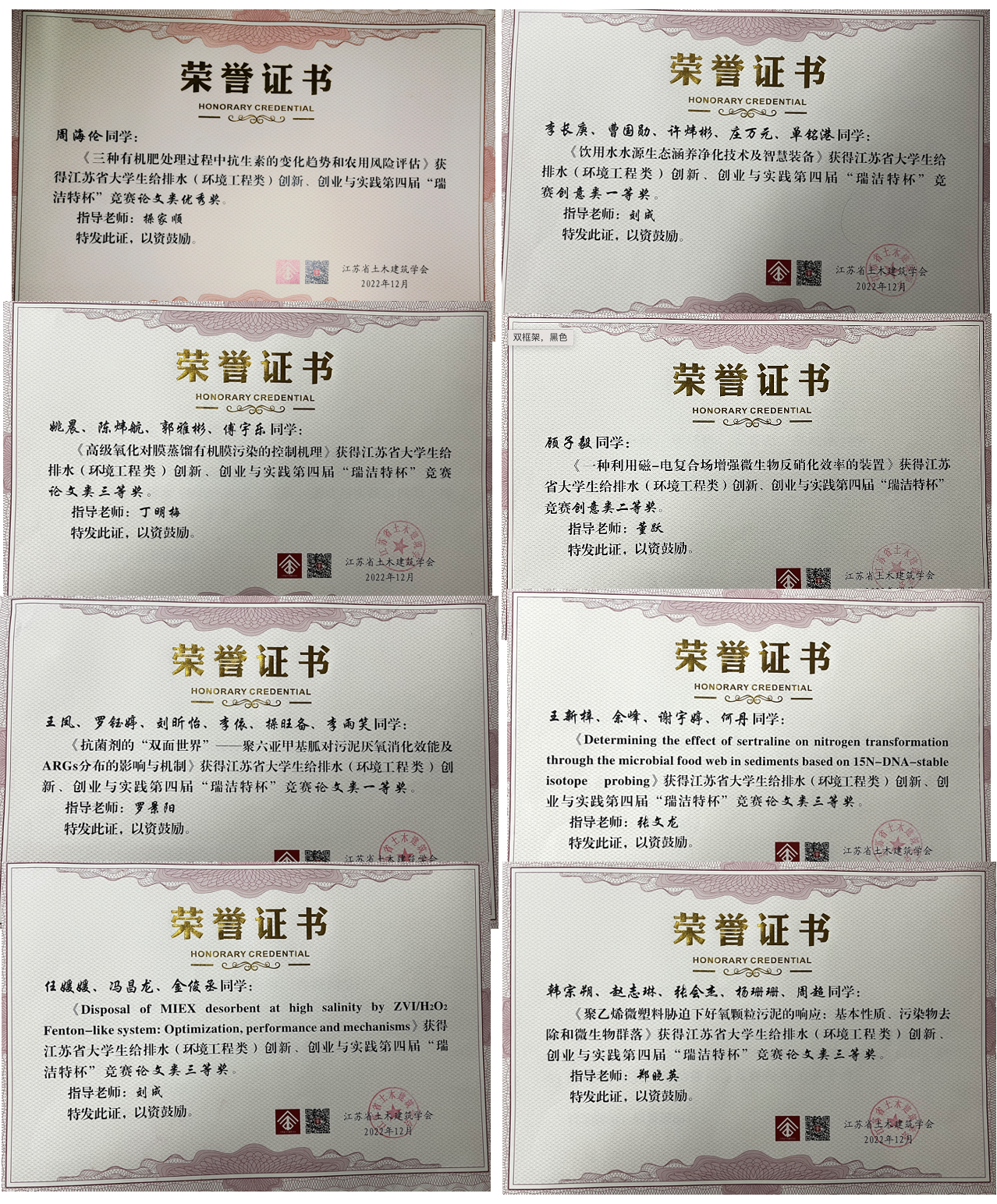 2022年11月18日,由我校承办的第四届“瑞洁特杯”江苏省大学生给水排水创新、创业与实践竞赛颁奖典礼暨闭幕式在江苏盐城举行。本次大赛由江苏省土木建筑学会、南京瑞洁特膜分离科技有限公司主办,开云电竞网环境学院为主要承办单位。本届竞赛共收到全省20所院校共计134项作品。