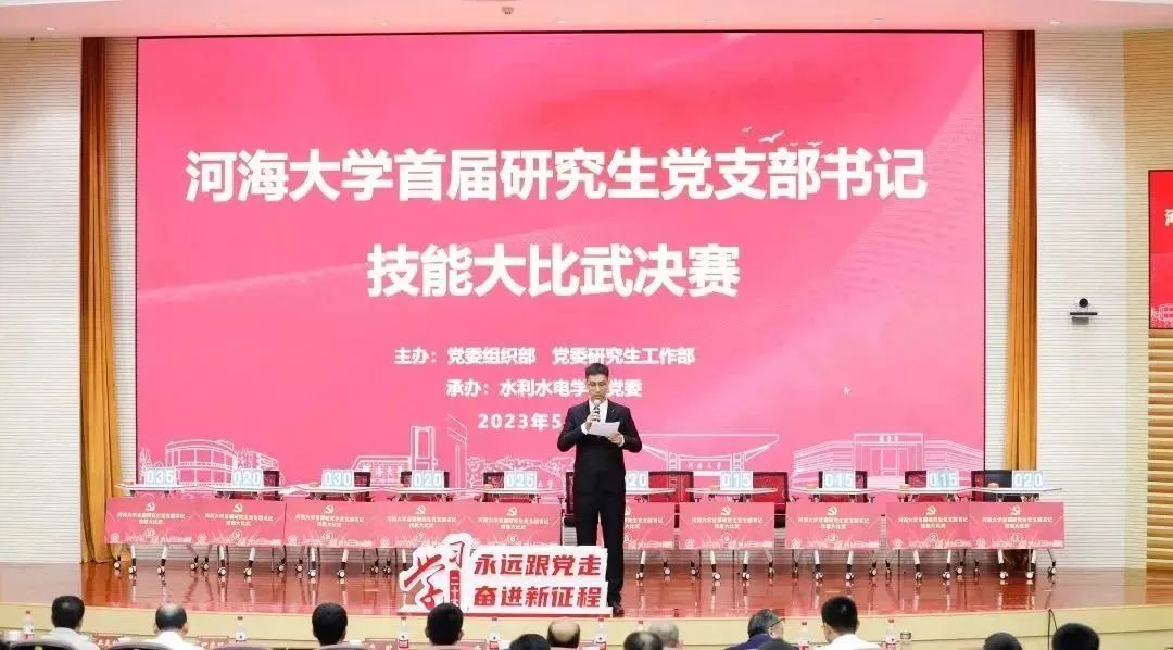为高质量开展学习贯彻习近平新时代中国特色社会主义思想主题教育,全面学习贯彻党的二十大精神,积极落实全省党建工作示范高校创建工作安排,进一步提高研究生党支部书记业务水平和履职能力,促进研究生党支部建设提质增效,学校党委组织部、党委研究生工作部和水利水电学院党委联合开展了开云电竞网首届研究生党支部书记技能大比武。本次比赛共分为初赛、复赛、决赛三个阶段,分别针对党支书理论知识和活动策划能力、党课讲课能力以及党务能力等进行考察。初赛环节考核方式主要为活动策划与线上答题,复赛为研究生党支部书记主题党课展示,决赛包括案例分析、党史知识与党务能力比拼两个环节。我院共11名党支书参加初赛,进入复赛2人,进入决赛1人。