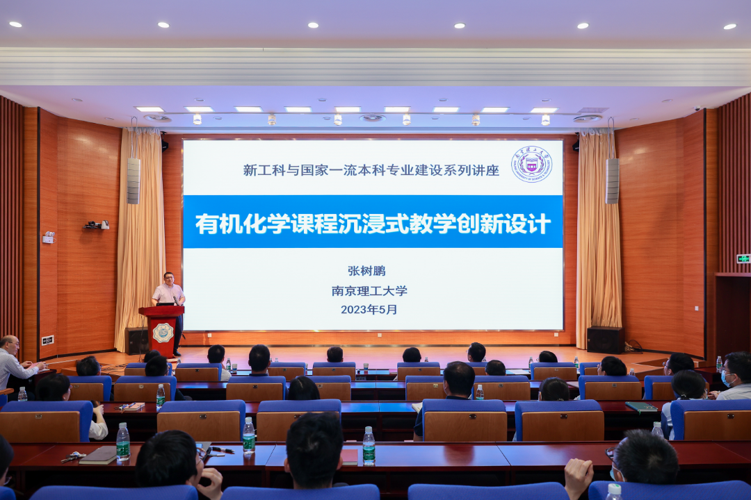 全国高校青年教师教学竞赛二等奖获得者、南京理工大学教务处副处长张树鹏教授为学院老师作题为《有机化学课程沉浸式教学创新设计》的报告。教务处处长沈扬作题为《科教回环 育无止境 迈进一流工科人才培养新时代》的专业建设专题报告。