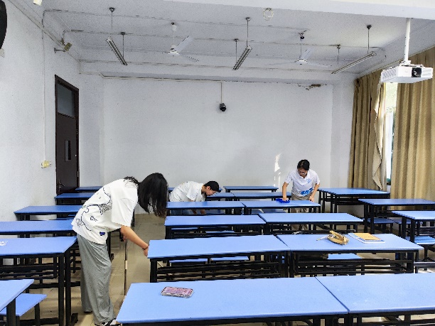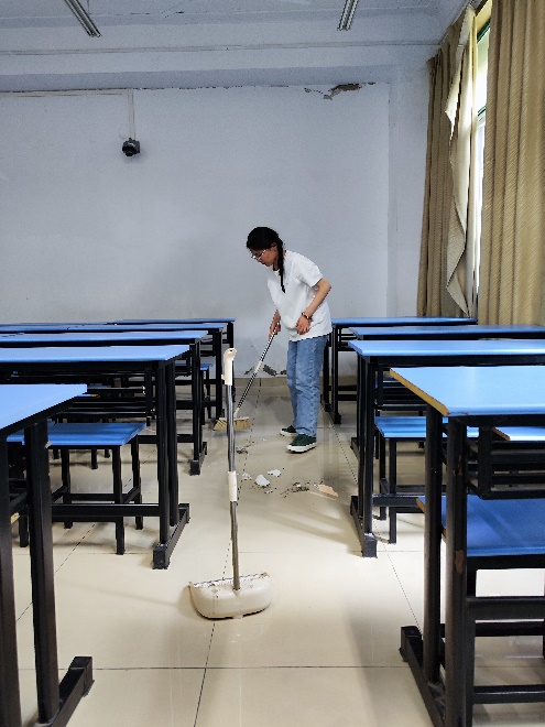 8日,为给广大师生营造更为舒适温馨的学习环境,支部成员于环境楼开展教室卫生清扫活动。支部党员拿起抹布、扫把等清扫工具,对教室进行全面的清理,有的擦桌子,有的扫地,有的摆放桌椅,相互合作,认真、细致地打扫每个角落,确保卫生不留死角。此外,支部党员还对楼道进行了打扫,扫除落叶、碎纸屑等垃圾。在大家的辛勤劳动下,教室和楼道变得更加整洁明亮,得到老师和同学的一致好评。
